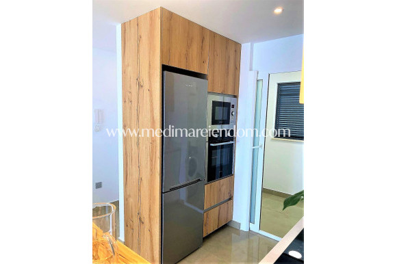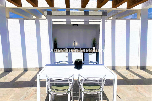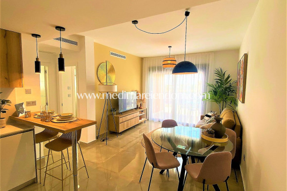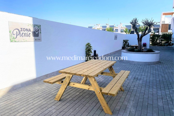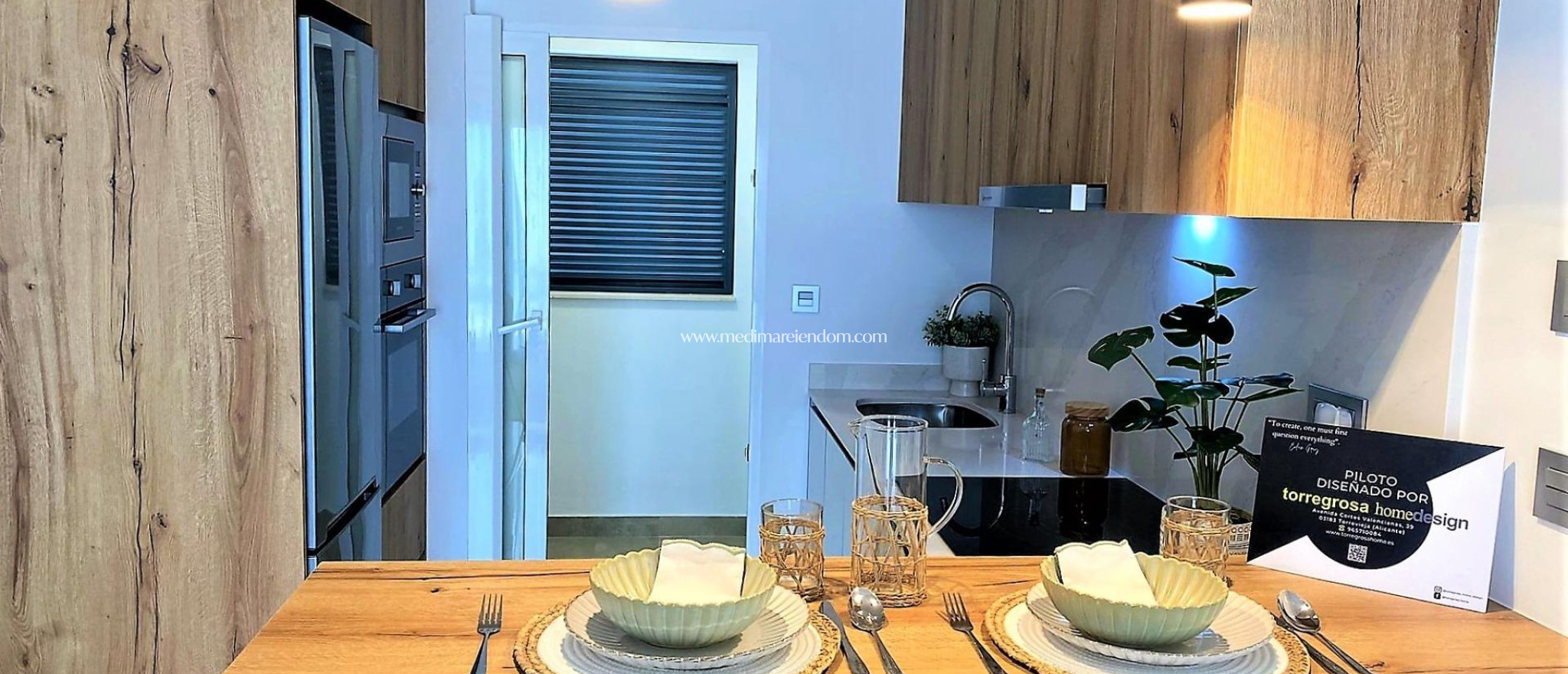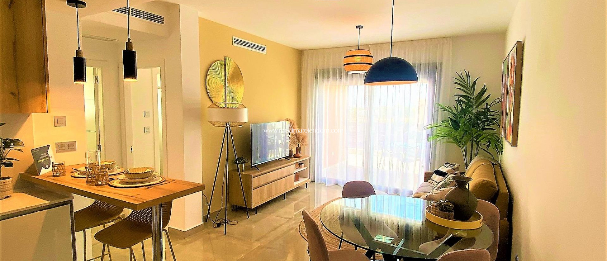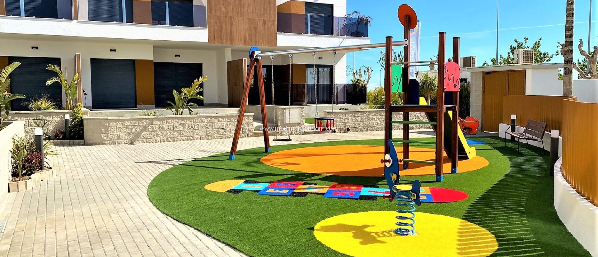 Modernt nybyggt bostadsområde i Pilar de la Horadada Stilfullt boende i hjärtat av Costa Blanca Upptäck ett nybyggt bostadsområde i Pilar de la Horadada, som erbjuder en perfekt kombination av modern design och komfort. Detta exceptionella bostadsområde har bungalows, lägenheter och takvåningar som är utformade för att uppfylla de högsta kraven för ett modernt boende. En mängd olika boendealternativ Välj mellan bostäder med 2 och 3 sovrum som är skräddarsydda för att passa olika livsstilar: Bungalows på bottenvåningen: Njut av en privat trädgård för avkoppling utomhus. Lägenheter på mellanvåningen: Rymliga terrasser för måltider utomhus. Takvåningar: Privata solarier med hisnande utsikt. Till varje fastighet hör ett garage och ett förråd i källaren, vilket garanterar bekvämlighet och säkerhet. Premiumfunktioner och bekvämligheter Dessa hem är utrustade med förstklassiga funktioner för att förbättra din boendeupplevelse: Termoakustiskt säkerhetsglas från ClimaSun. Förstärkta entrédörrar för ökad säkerhet. Golvvärme i alla badrum. Aerotermiskt varmvattensystem för energieffektivitet. Förinstallerad luftkonditionering och uppvärmning via kanalsystem. Gemensam pool, jacuzzi, gym, anlagda trädgårdar och en lekplats för barn. Hissar i flerfamiljshusen, som förbinder alla våningar från källaren till takvåningarna. Under en begränsad tid ingår vitvaror, badrumsspeglar, duschväggar och integrerad belysning i inköpspriset, vilket ger extra värde till din investering. Förstklassigt läge i Pilar de la Horadada Detta bostadskomplex är idealiskt beläget i ett lugnt och familjevänligt område i Pilar de la Horadada. Staden har en livlig huvudgata med stormarknader, butiker, restauranger och charmiga torg. Stränder: Torre de la Horadada och Mil Palmeras ligger bara 5 km bort och erbjuder sandstränder och natursköna strandpromenader. Flygplatser: Murcia-Corvera flygplats ligger 40 km bort och Alicante flygplats ligger 55 km bort. Golfbanor: Flera kända golfbanor ligger inom en radie av 15 km. Shopping: Det populära köpcentret Zenia Boulevard ligger bara 15 km bort. Hamnar: Torre de la Horadada Marina ligger bara 5 km bort. Ditt drömhem väntar Upplev det bästa av Costa Blanca livsstil i detta moderna bostadsområde. Planera ett besök idag för att hitta ditt perfekta hem i Pilar de la Horadada!