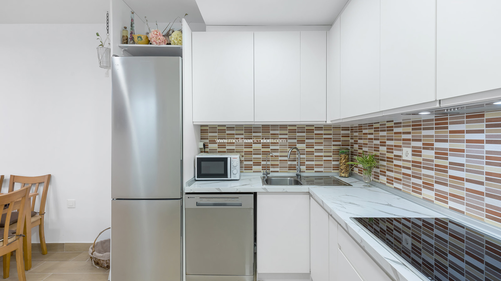 Denna charmiga lägenhet på bottenvåningen ligger i La Zenia, ett av de mest eftertraktade områdena i Orihuela Costa, känt för sina vackra stränder och livliga atmosfär. Fastigheten har en bebyggd yta på 66 m², fördelat på två sovrum och ett badrum, och erbjuder mysiga och funktionella utrymmen för bekvämt boende. Lägenheten byggdes 1999 och totalrenoverades 2021 och har uppdaterats med en modern design och en optimerad planlösning. Den har också en privat tomt på 30 m², perfekt för att njuta av utomhusstunder och det behagliga medelhavsklimatet. Fastigheten är fullt möblerad och inkluderar en privat trädgård och förråd, vilket ger extra värde och bekvämlighet. Detta hem ligger cirka 1,5 km från havet och ger snabb tillgång till de fantastiska stränderna i La Zenia, kända för sitt kristallklara vatten och gyllene sand. Området erbjuder ett brett utbud av tjänster och bekvämligheter, inklusive stormarknader, restauranger, köpcentra som den populära Zenia Boulevard och olika fritidsaktiviteter. Även om komplexet inte har någon gemensam pool, ger dess utmärkta läge och transportförbindelser enkel tillgång till andra sevärdheter längs Costa Blanca, vilket gör det till ett idealiskt val för både permanent boende och semesterinvesteringar.
