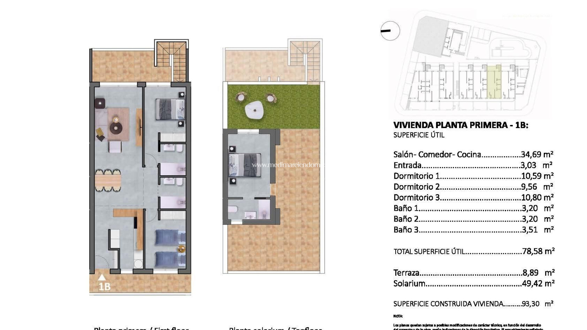 Exklusiva nybyggda bungalows i Pilar de la Horadada - privilegierat läge Ett unikt bostadsområde för att njuta av Medelhavet Välkommen till detta exklusiva bostadsområde med 16 bungalows och ett hörnradhus med 2 och 3 sovrum, utformat för dem som letar efter livskvalitet och komfort på Costa Blanca. Detta moderna komplex ligger bara en kort promenad från centrum av Pilar de la Horadada och erbjuder en lugn miljö med alla bekvämligheter inom räckhåll. Bostäderna är utformade för att maximera välbefinnandet för sina ägare: Bottenvåningar med trädgård på framsidan och uteplats på baksidan. Översta våningen med privat terrass och solarium med spektakulär utsikt. Ett hörnradhus, med mer utrymme och integritet. Bostadsområdet har en stor gemensam pool omgiven av grönområden, perfekt för avkoppling under Medelhavssolen. Modern design och högkvalitativa ytbehandlingar Varje fastighet har noggrant utformats för att erbjuda ljusstyrka, funktionalitet och modern stil. Pansarförsedd ytterdörr för ökad säkerhet. Kök med öppet koncept, integrerat i vardagsrummet för bekvämlighetens skull. Moderna badrum med duschkar och installation av skärmar i härdat glas. Förinstallation av luftkonditionering i vardagsrum och sovrum. Varmvattenproduktion med individuell värmefläkt för ökad energieffektivitet. Övre våningar med förinstallation av utomhuskök i solarium. Dessutom har utvecklingen ett parkeringsområde för cyklar och en privat parkeringsplats per fastighet. Pilar de la Horadada - en plats att bo på året runt Pilar de la Horadada ligger i provinsen Alicante och är en idealisk destination för dem som vill kombinera lugn, natur och förstklassiga tjänster. De vackra stränderna, som Playa de las Higuericas, ligger bara några minuter bort och erbjuder gyllene sand och kristallklart medelhavsvatten. Detta projekt har ett oslagbart läge, med tillgång till stormarknader, affärer, restauranger och fritidsanläggningar inom gångavstånd. I området finns också vandringsleder, cykelvägar och ett brett utbud av sportanläggningar. Viktiga avstånd till de viktigaste platserna av intresse Torre de la Horadada Beach - 3 km (5 min bilfärd). Lo Romero Golf Course - 5 km (10 min bilfärd). La Zenia Boulevard Shopping Centre - 15 km (15 min bilfärd). Corvera Airport (Murcia) - 40 km (40 min bilfärd). Alicante flygplats - 55 km (55 min bilfärd). Reservera din Costa Blanca-fastighet idag Missa inte chansen att köpa en helt ny fastighet på ett oslagbart läge. Kontakta oss idag för mer information och för att ordna en visning.