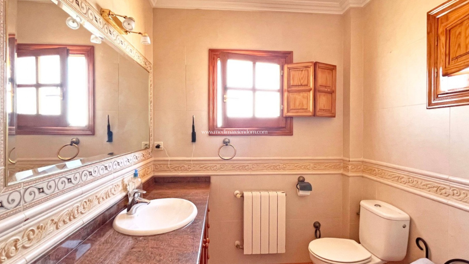 Vi är stolta över att presentera denna magnifika villa med inte mindre än 8 sovrum, 3 badrum, 2 balkonger, en stor terrass på bottenvåningen och gemensam pool. Vi kommer åt fastigheten genom en gångport eller en bredare grind för att parkera bilen i Inside. På höger sida av huset finns en helkaklad altan med eftermiddags/kvällssol. Vi kommer in i huset genom det rymliga uterummet som har glasats in och ett tillägg till vardagsrummet. På denna våning hittar vi även köket i öppen planlösning, 2 sovrum och ett komplett badrum. Vi går upp på övervåningen och kommer till en passage med tillgång till ytterligare 3 sovrum och ytterligare ett badrum. Uppför ytterligare en trappa kommer vi till en annan passage med tillgång till ytterligare 3 sovrum och ett komplett badrum. Två sovrum på denna våning har balkong. Ett besök rekommenderas starkt för att till fullo uppskatta utrymmet i detta hus.