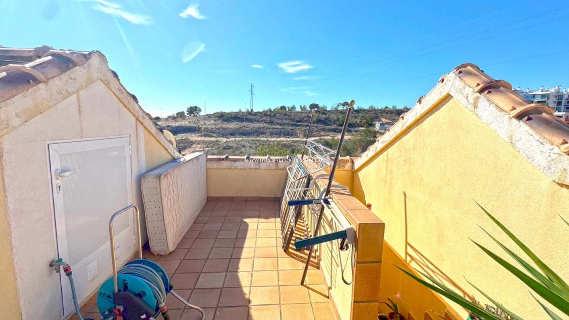 Välkommen till ditt drömhus på Costa Blanca. Detta 85 m² stora parhus har renoverats med stor omsorg och högkvalitativa material, och erbjuder den perfekta kombinationen av lyx och komfort. Nyckelfunktioner: 2 rymliga sovrum och 2 moderna badrum, designade för maximal komfort.Helt renoverat med stilfulla ytor och ett modernt utseende. Flera utomhusutrymmen, inklusive en liten trädgård, en terrass på bottenvåningen, en terrass på andra våningen från sovrummet och en privat takterrass med hisnande panoramautsikt. Ljusa och luftiga sällskapsytor med mycket naturligt ljus till alla stränder, restauranger och golfbanor. bekvämligheter. Det är möjligt att köpa en garageplats för detta hus för 9 000 €. Detta hem är inflyttningsklart och perfekt för dig som söker lyx, komfort och fantastisk utsikt.