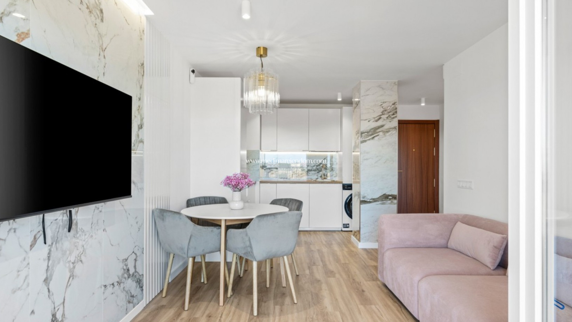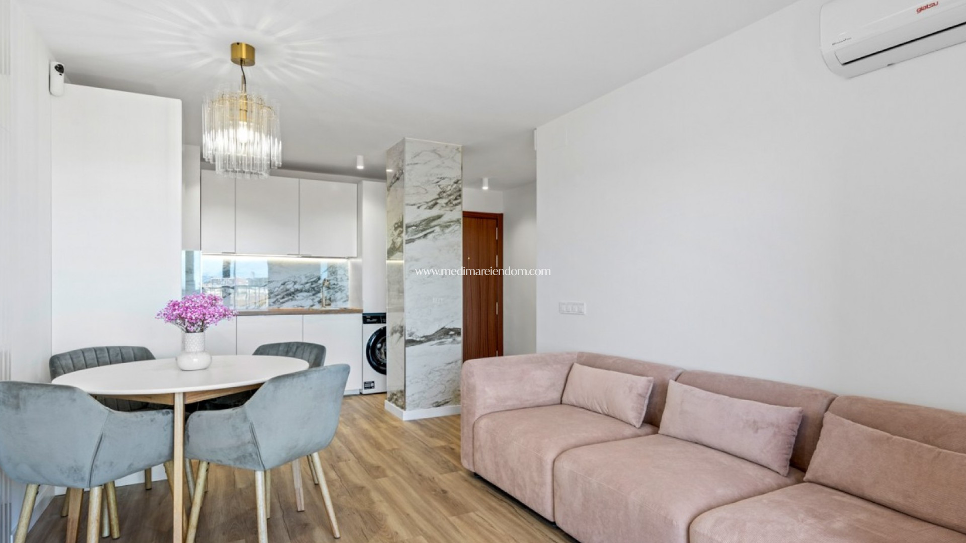 Välkommen till denna helrenoverade, exklusiva lägenhet belägen i det eftertraktade området Punta Prima, bara 500 meter från havet. Detta är en sällsynt möjlighet att äga en fastighet som erbjuder verkligt hisnande utsikt – över Medelhavet, fantastiska soluppgångar och solnedgångar, och den upplysta stadssilhuetten på natten. Denna lägenhet är designad enligt högsta standard och har genomgått en fullständig renovering, inklusive uppdaterad VVS, el och installationer, vilket erbjuder modern komfort med tidlös stil. Viktiga funktioner: 2 rymliga sovrum och 2 eleganta badrum Alla fönster vetter mot panoramaterrassen – inga innergårdar Fullständig ljudisolering från grannar för total avskildhet Ljudisolerade panoramafönster med elektriska jalusier Designmöbler, stora sängar och fristående garderober Fullt utrustat kök med diskmaskin, tvättmaskin och Smart TV Dold stämningsbelysning, flera speglar och en elegant inredning Hiss i byggnaden Gemensam pool Luftkonditionering och larmsystem Detta är ett högt efterfrågat läge, och fastigheter med denna nivå av finish och utsikt är otroligt sällsynta. Med exceptionellt låga driftskostnader – IBI: 117 €/år och samfällighetsavgift: 170 €/kvartal – erbjuder denna lägenhet enastående värde för både livsstil och investering. Visningar är endast möjliga efter överenskommelse. Kontakta oss idag för att uppleva detta unika hem själv.