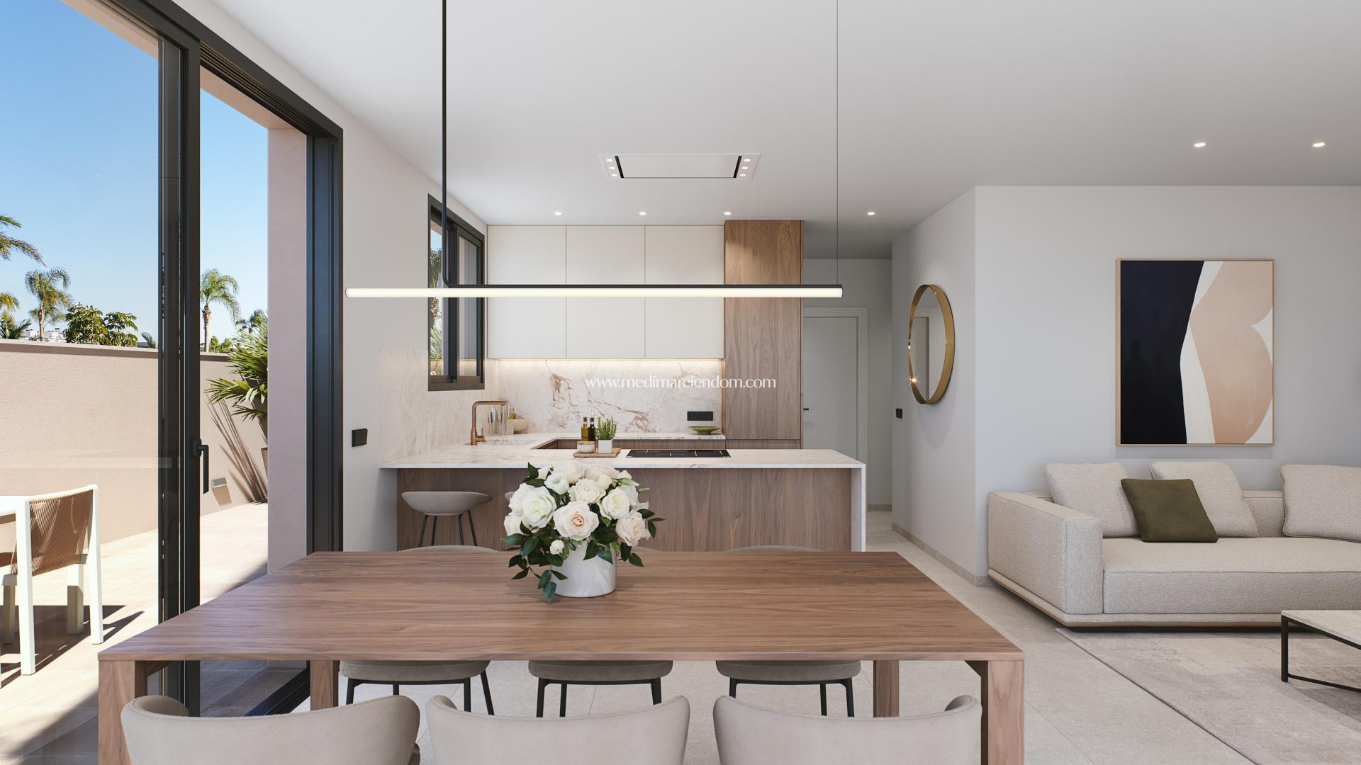 Exklusivt bostadsområde med 2 lyxiga parhus med havsutsikt på stranden ”Las Higuericas” i Torre de la Horadada. Upptäck dessa imponerande parhus belägna i Torre de la Horadada, på andra linjen från stranden Las Higuericas. Med en modern och elegant design, rymliga utrymmen och material av högsta kvalitet har dessa fastigheter utformats för att erbjuda maximal komfort och exklusivitet. Med privat pool på 5×3 m, parkering på tomten och solarium på 40 m2: En spektakulär öppen yta som är idealisk för en chill-out-zon, grill eller för att njuta av solen och den fria utsikten. Varje villa har separat ingång från de omgivande gatorna, eftersom det inte finns några angränsande byggnader. Lugna gator med stora grönområden runt bostadsområdet, vilket är idealiskt för en ung familj. Villorna har en tomt på 170 m2 och en byggnadsyta på 135 m2. Villorna har tre sovrum och tre badrum (två av dem en-suite) på två våningar. Köket är fullt möblerat med möjlighet till anpassning och inkluderar vitvaror. I en öppen planlösning är matsalen omgiven av stora fönster som ger ett behagligt dagsljus och direkt tillgång till poolen och trädgården med belysning, bevattning och lokal växtlighet. De utvalda ytbehandlingarna med material av högsta kvalitet, den personliga lyxiga designen och den maximala komforten, tillsammans med luftkonditionering med värme och kyla i alla utrymmen, gör att villan kan avnjutas både under varma somrar och milda vintrar, vilket gör det möjligt att bo här året runt. Belägna i ett av de bästa områdena på Costa Blanca erbjuder dessa bostäder en lugn miljö, men med alla tjänster i närheten: restauranger, stormarknader, golf och köpcentra. De två parhusvillorna ligger i andra strandlinjen i Las Higuericas, i Torre de la Horadada, ett paradis i alla avseenden, där du kan njuta av första strandlinjen, det vidsträckta Medelhavet, strandpromenaden, uppfriskande bad i havet, vattensporter, segling, surfing, snorkling och bara 8 km från Lo Romero Golf, en av de 21 golfbanorna som finns på Costa Blanca. 5 minuter från småbåtshamnen i La Torre de la Horadada och 10 minuter från småbåtshamnarna i San Pedro del Pinatar och de bästa restaurangerna där du kan njuta av den bästa medelhavsmat. Glöm inte närheten till motorvägen AP7 som förbinder vårt bostadsområde med två flygplatser med internationella destinationer, 44 km till Corvera och 75 km till Altet, Alicante. Den närmaste orten till området där projektet ligger är Pilar de la Horadada, 1 km bort, en lugn by som har alla typer av tjänster, skolor, vårdcentraler, polis, apotek etc. Det finns också två shoppingområden i närheten, Centro Comercial Dos Mares i San Javier, 5 minuter med bil, och La Zenia Boulevard i Orihuela Costa, 15 minuter med bil.