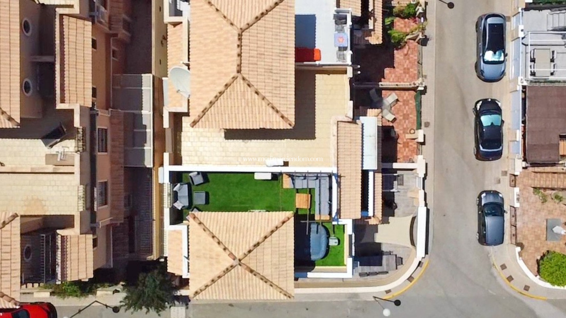 Välkommen till detta fantastiska, helrenoverade radhus beläget i hjärtat av Villamartin – ett av de mest eftertraktade områdena på Costa Blanca. Beläget på en rymlig hörntomt erbjuder detta hem en perfekt blandning av inomhuskomfort och utomhusliv. Fastigheten ståtar med 3 sovrum och 2 moderna badrum, alla smakfullt uppgraderade till högsta standard. På bottenvåningen hittar du ett ljust och öppet vardagsrum, ett elegant kök och ett av sovrummen – perfekt för gäster eller som hemmakontor. Gå ut till den stora privata terrassen, tillräckligt stor för att parkera en bil inne på tomten om så önskas. Det är en fantastisk plats för underhållning, middagar eller bara avkoppling i den spanska solen. Från sovrummet har du direkt tillgång till en privat balkong, perfekt för morgonkaffe eller lugna kvällar. En rymlig takterrass erbjuder ytterligare utomhusutrymme med panoramautsikt – perfekt för att sola eller skapa din egen chill-out-zon. Hemmet säljs fullt möblerat och inkluderar luftkonditionering för komfort året runt. Beläget i ett välskött område med tillgång till en vacker gemensam pool, är denna fastighet redo att flyttas in och njuta av. Oavsett om du letar efter ett permanent boende, ett fritidshus eller en högavkastande hyresinvestering, har detta nyckelfärdiga radhus allt.