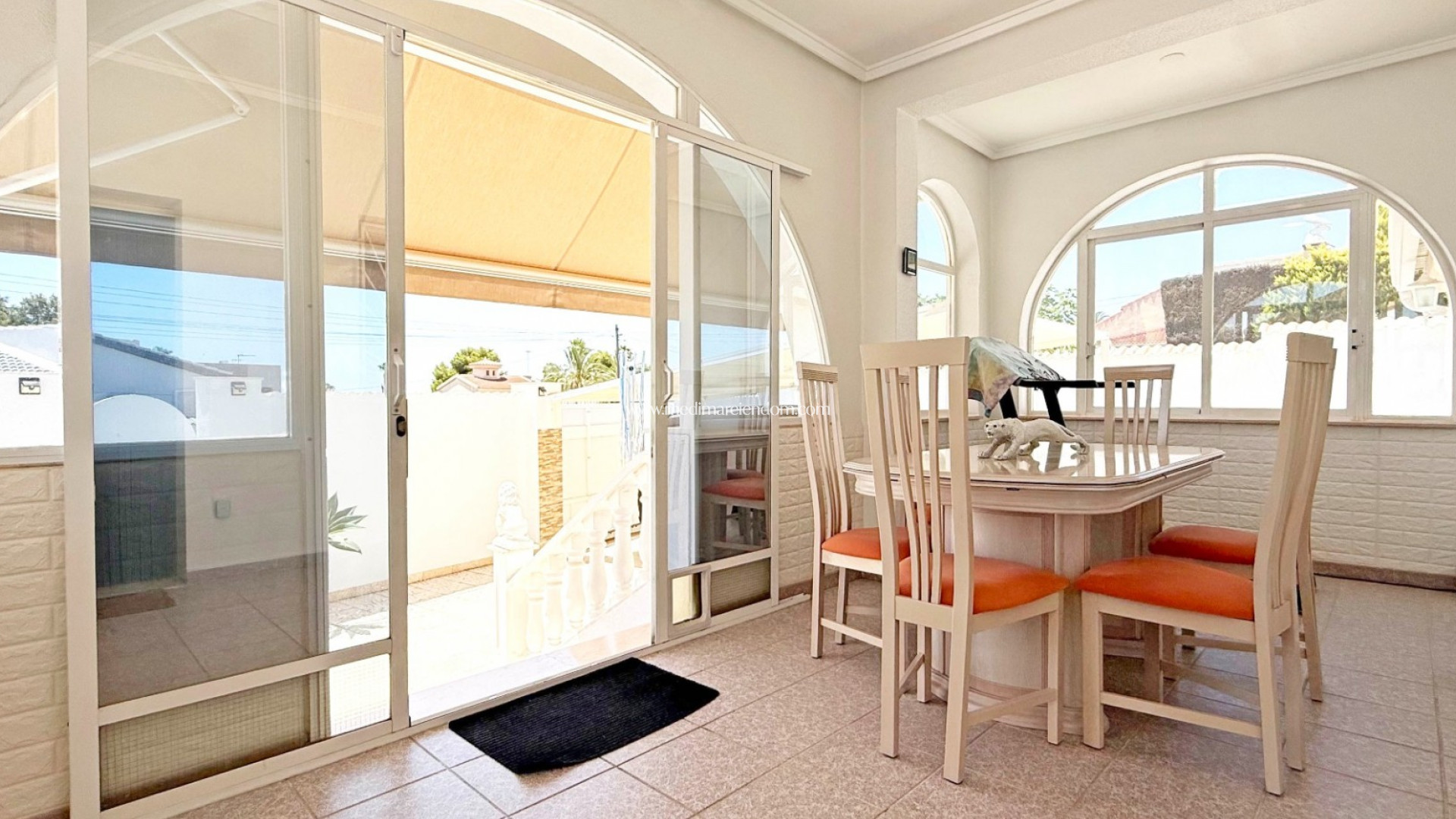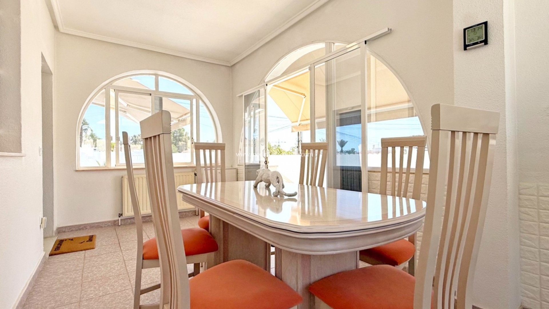 Upptäck denna förtjusande villa i medelhavsstil, idealiskt belägen på en stor hörntomt på 480 m² i det eftertraktade området Ciudad Quesada. Detta hem erbjuder avskildhet, utrymme och traditionell charm och är perfekt för året runt-boende, en semesterort eller investering. Med en total byggd yta på 128 m² har fastigheten 3 sovrum, 2 badrum och en gästtoalett. Ett av sovrummen är en fristående studio med eget badrum, perfekt för gäster eller uthyrning, nås via en utvändig trappa. Interiören har ett ljust vardagsrum med öppen spis, separat kök med tvättstuga och sydostläge för optimalt solljus. Huset säljs fullt möblerat och är inflyttningsklart. Utomhus kan du njuta av en privat pool, täckt parkering och ett generöst trädgårdsområde komplett med pergola, perfekt för middagar och avkoppling utomhus. Fastighetens höjdpunkter: 3 sovrum (inklusive 1 separat studio) 2 badrum + 1 gästtoalett 128 m² byggd yta 480 m² hörntomt Separat kök med tvättstuga Sydostläge Privat pool Täckt parkering Säljs möblerad Byggår 1989 IBI: 370 €/år Utmärkt läge: 3 minuter till centrum av Ciudad Quesada (butiker, barer, restauranger, stormarknader) 10 minuter till stränderna i Guardamar del Segura 10 minuter till Habaneras köpcentrum (Torrevieja) 25 minuter till Alicantes internationella flygplats