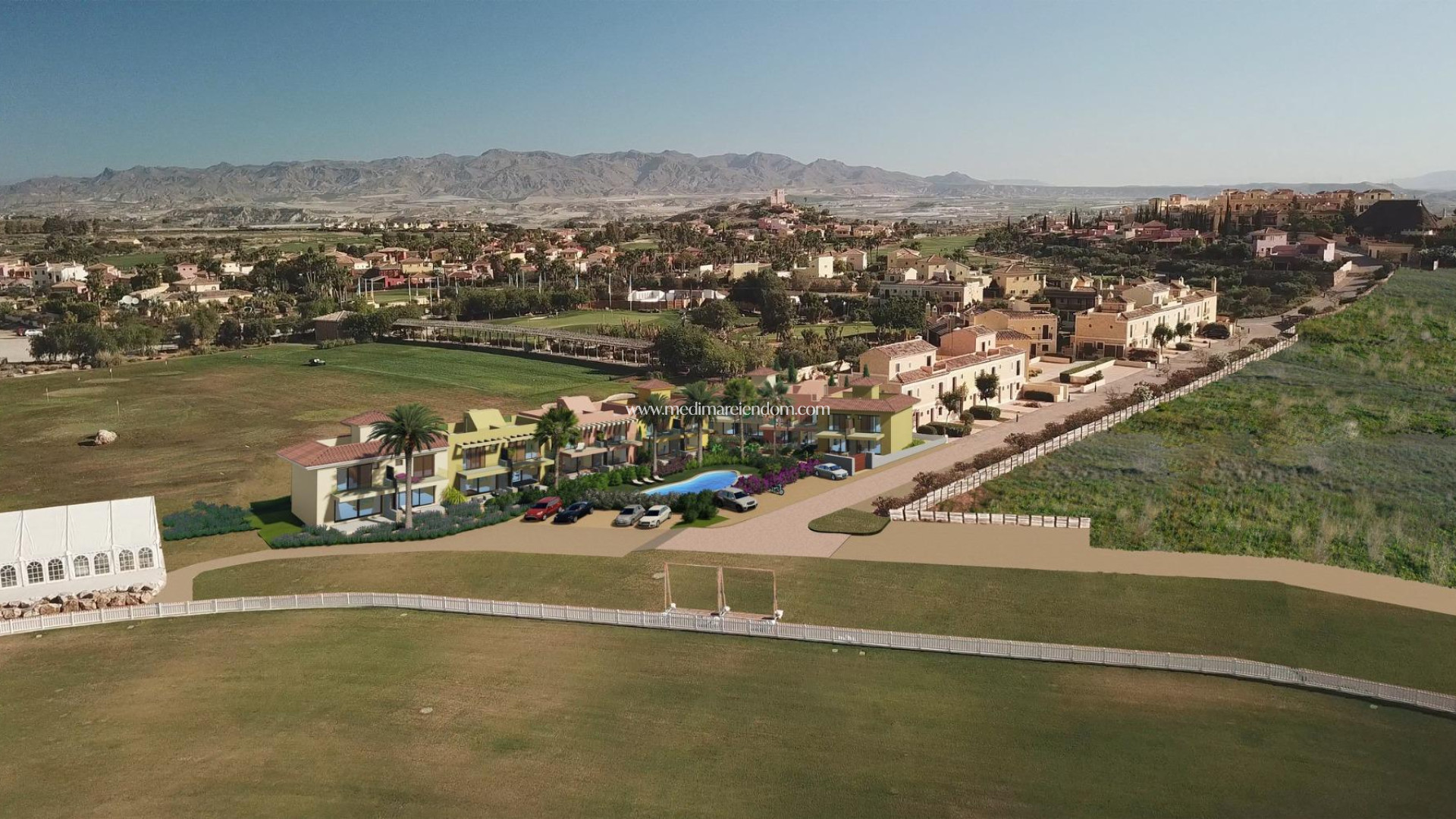 FANTASTISKA NYBYGGDA RADHUS I DESERT SPRINGS RESORT Ett unikt tillfälle att köpa ett av ett begränsat urval av radhus med två sovrum som släppts i fas 1 av ett privat bostadsområde med 14 fantastiska radhus som ligger runt en privat pool, i vackra anlagda trädgårdar, med ett avundsvärt läge på Desert Springs. Modern design och naturligt ljus är de utmärkande egenskaperna med en interiör som erbjuder ett stilfullt hem med modernt utseende, med spektakulär utsikt över cricket-ovalen och bergskedjorna bortom, mot Medelhavskusten. Vardagsrummet leder ut till en täckt veranda. Fastigheten har tillgång till en parkeringsplats, trädgårdar, pool och ett privat solarium på taket. Högkvalitativa finesser inkluderar; ett attraktivt kaklat badrum och duschrum. Ett öppet kök med "Silestone" bänkskivor, med kyl/frys och tvättmaskin integrerade i skåpen. Keramisk spis, spisfläkt och mikrovågsugn. Luftkonditionering, dubbla glasrutor, spegelskåp i sovrummen och högkvalitativa sanitetsartiklar av "Roca" eller "Porcelnosa" i alla utrymmen. Specifikation 2 sovrum 2 badrum, en-suite Vardagsrum/matsal med veranda Privat solarium på taket Parkeringsplats Gemensamma trädgårdar Gemensam pool Gated community med säkerhet Golvyta 96m2 Övriga utrymmen 11m2 Takterrass 33m2 Lägenheterna ligger inom Europas enda internationellt prisbelönta familjeanläggning och Championship Desert Golf Course. Desert Springs Resort är unikt, beläget i en av de mest lugna och eftertraktade enklaverna på Andalusiens kust i Cuevas del Almanzora och Vera i Almería, och erbjuder Spaniens finaste urval av prisvärda lyxfastigheter, från lägenheter till radhus och villor i alla storlekar, alla byggda enligt våra krävande specifikationer. Det är en prisbelönt golf-, sport- och fritidsanläggning som ligger bland klippor och smaragdgröna fairways, inbäddad i en lyxig egendom. Anläggningen är omgiven av ostörd natur och har en spektakulär utsikt över bergskedjor och Medelhavet.