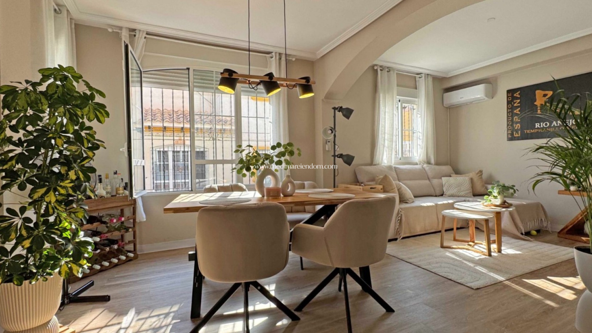 Upptäck detta eleganta och helrenoverade radhus i ett av Orihuela Costas mest eftertraktade områden – Lomas de Cabo Roig. Beläget på en generös yta på 100 m² erbjuder detta eleganta hem 2 rymliga sovrum och 2 moderna badrum, perfekt för både året runt-boende och semesterresor. Interiören har omsorgsfullt uppgraderats med ett ljust, öppet vardagsrum/matsal och ett specialdesignat kök vid entrén, med eleganta ytbehandlingar, moderna vitvaror och utmärkt förvaringsutrymme. Stig ut till en vackert underhållen terrass med matplats och en privat jacuzzi-spa-zon – perfekt för att koppla av under stjärnorna. Takterrassen med havsutsikt är anlagd med konstgräs för extra komfort, vilket skapar den perfekta platsen för att sola eller underhålla gäster. Den lugna gemensamma poolen ligger bara 100 meter bort. Hemmet erbjuder en lugn men bekväm livsstil nära alla viktiga tjänster: La Zenia Boulevard – 2 km Restauranger och barer – 600 m Stormarknader – 500 m Stränder – 3 km Cabo Roig Strip – 2,7 km Viktiga funktioner: Luftkonditionering i hela huset Inflyttningsklart Lugn bostadsgata Välskött urbanisering Utmärkt uthyrningspotential Detta är en sällsynt möjlighet att förvärva ett högkvalitativt hem nära havet. Kontakta oss idag via telefon eller WhatsApp för att boka en privat visning.